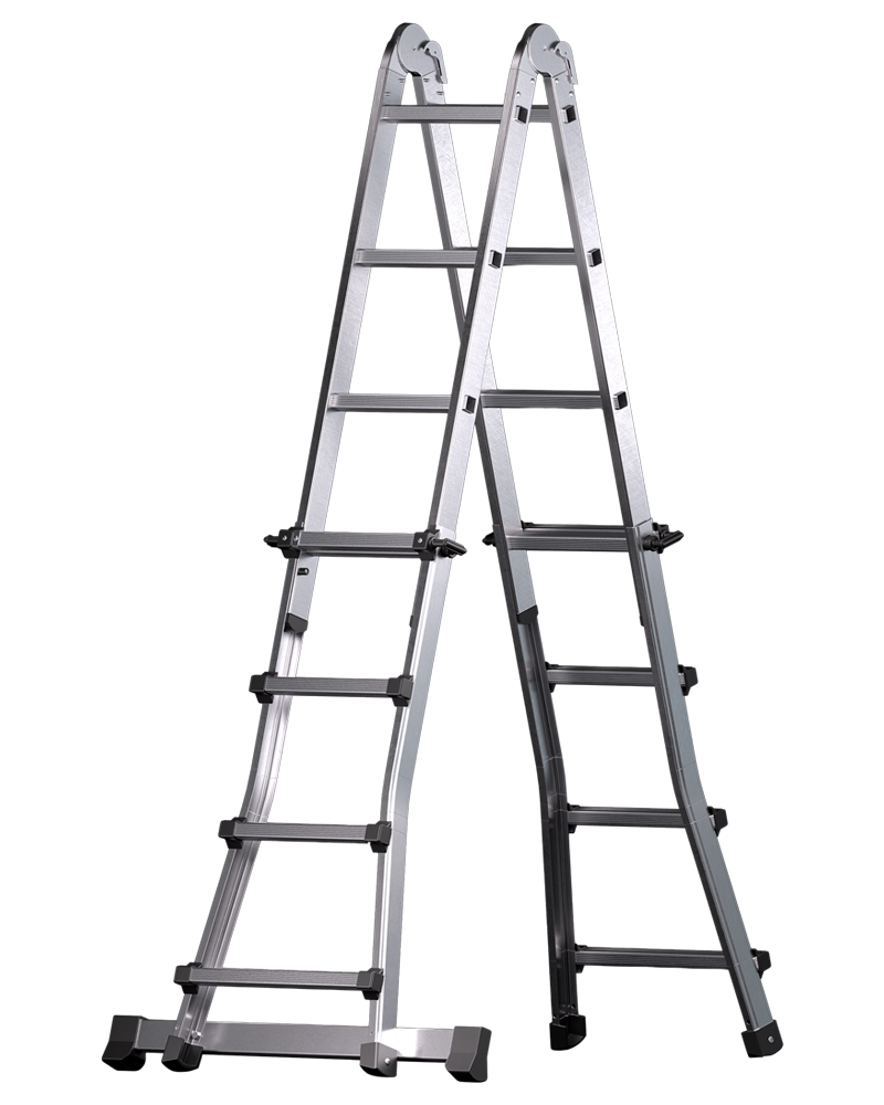 <ul> <li>Aluminium multi-purpose ladder with platform</li> <li>Ladder can be used in 3 different positions: extension ladder position, standing position and work platform (1400x290 mm)</li> <li>Comfortable non-slip rung (30x30 mm) and inner width of the ladder 285 mm</li> <li>Multiusos hinges and slip-resistant cross-beam</li> </ul>