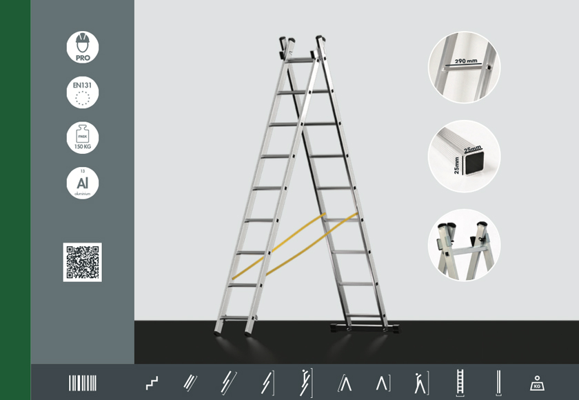 - Dispositivo fácil de utilizar para transformar la escalera en posición de tijera