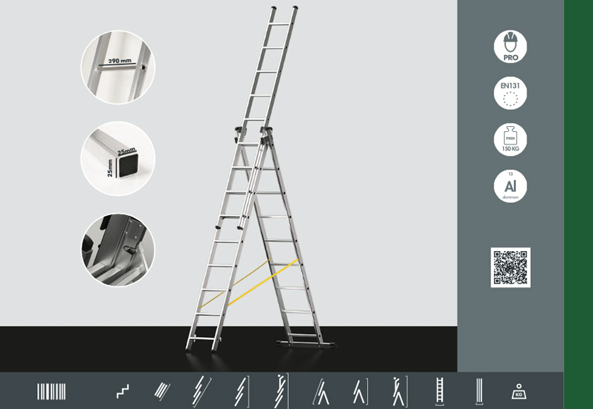 - Échelle transformable 3 plans en aluminium