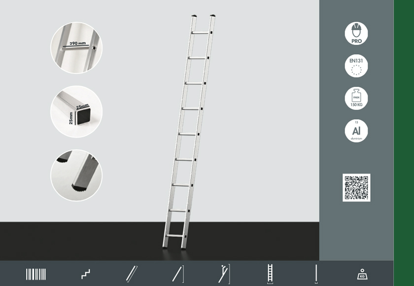 - Degrau antiderrapante confortável (25×25 mm) e largura interior da escada com 290 mm